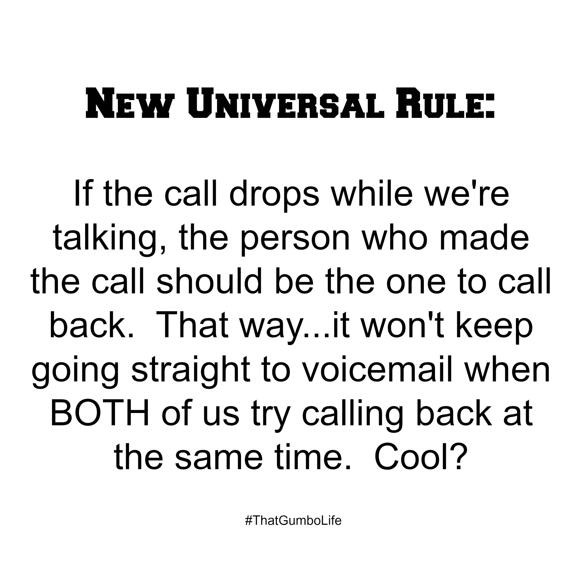 This frustrates me beyond reason so the people I talk to regularly on the phone know this is what we do. If I called you and the call drops while we're talking...I will be the one who calls back. If you called me and the call drops while we're talking...you should be the one who calls back cuz if I get voicemail more than once...I'm so annoyed I won't even remember what we were talking about. LOL!