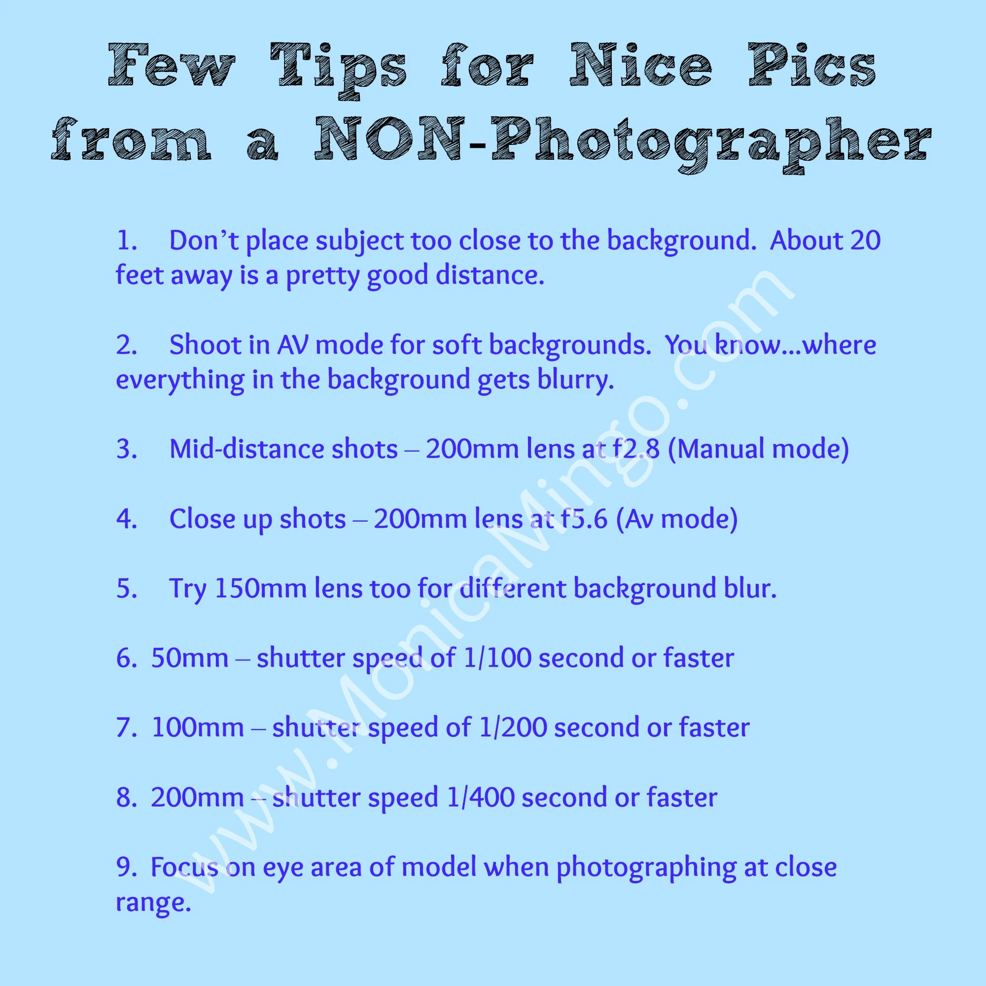 So, here are a few tips I've learned along the way by just doing it.  I have books and read photography sites but honestly...they are all snobby with the information.  They talk to you like you should know other stuff already.  They seriously need to know how to explain stuff mo'betta.